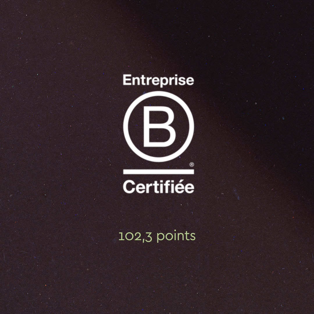 102,3 points. On est aussi entreprise à mission depuis juin 2021. Oé fait partie du Mouvement Impact France que l’on peut comparer à un MEDEF qui porte de vraies valeurs environnementales et sociétales.